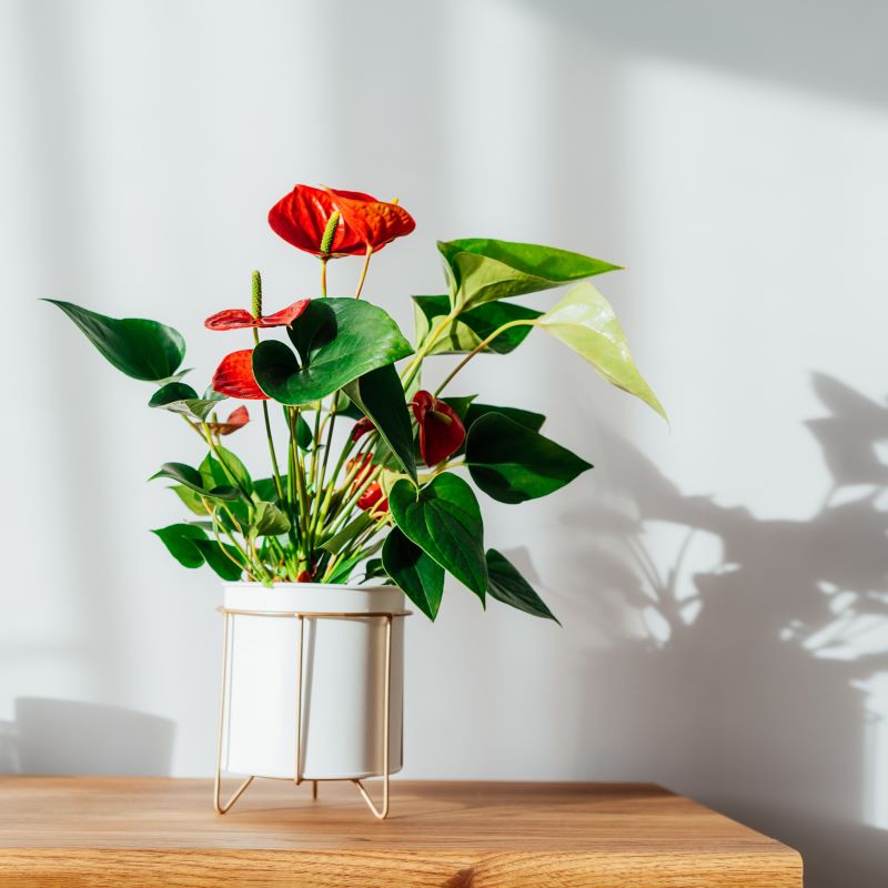 Le nom Anthurium ne vous dit peut-être rien, mais en voyant cette plante d’intérieur garnie de fleurs en forme d’épis, vous la reconnaîtrez immédiatement. L’Anthurium est l’une des rares plantes d’intérieur qui fleurit toute l’année, offrant un spectacle permanent !