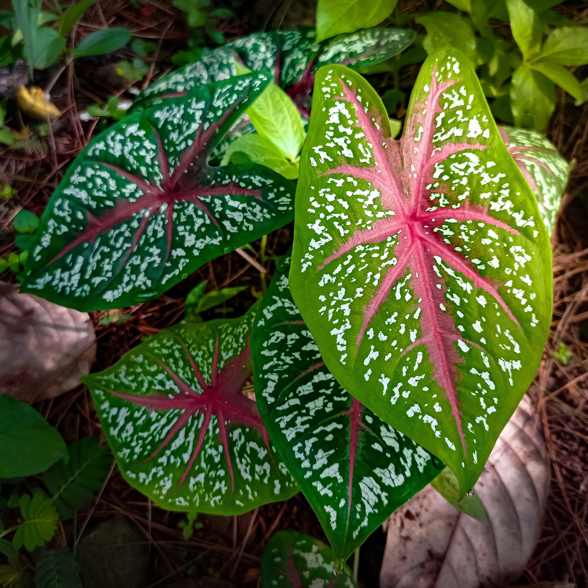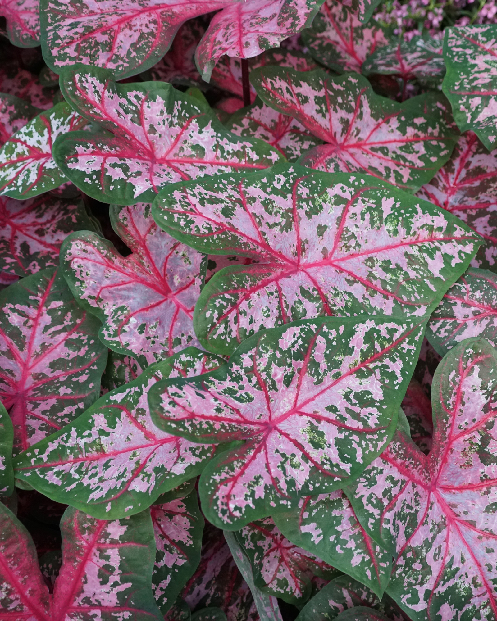 Les caladiums sont aussi appelés « ailes d’ange ». Ce nom vient de la forme et de l’aspect léger, presque flottant de leurs feuilles.