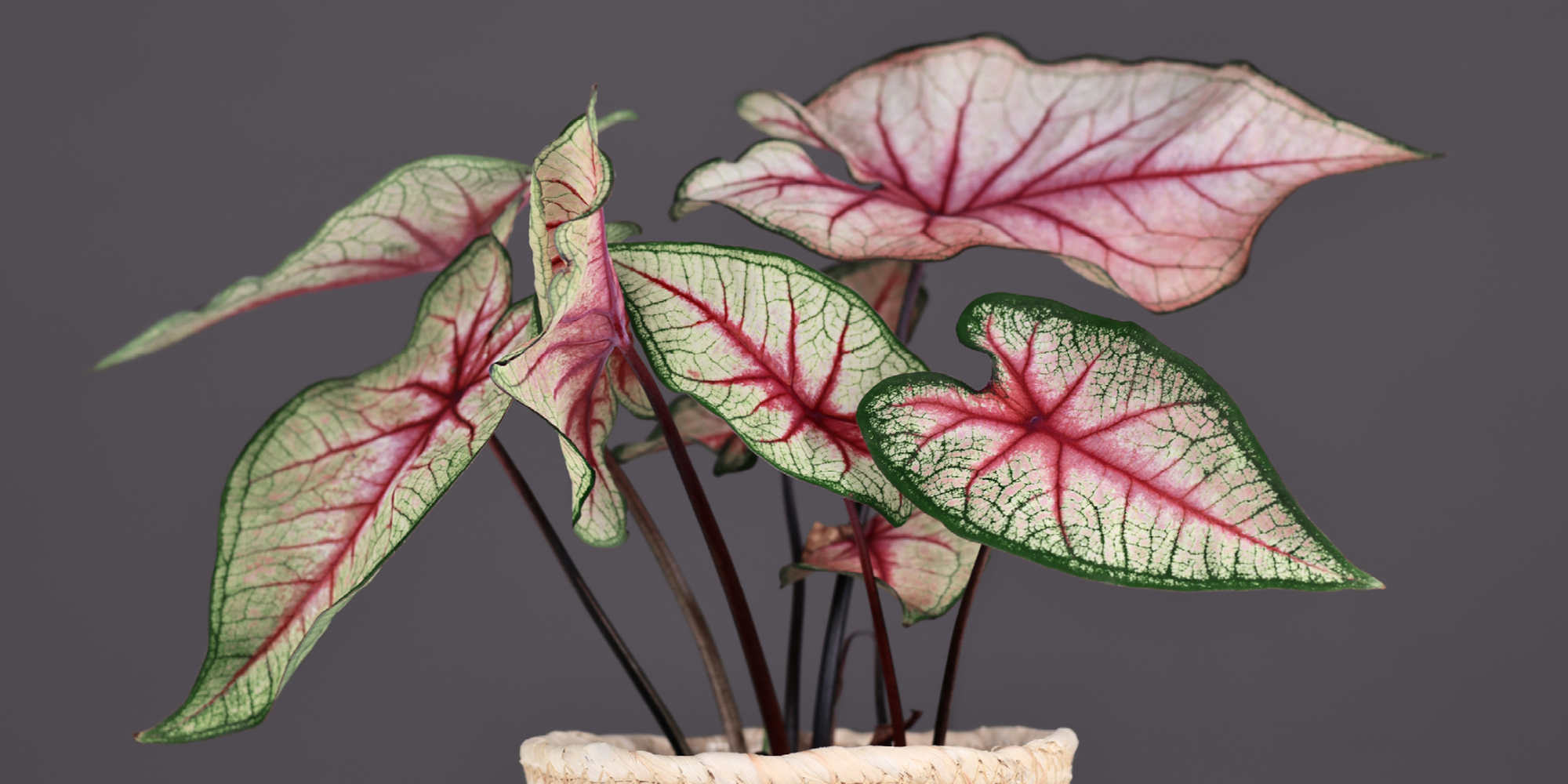 Envie de couleur sans fleurs ? Les caladiums misent tout sur leur feuillage. Leurs grandes feuilles en forme de cœur, leurs teintes éclatantes et leurs motifs marqués en font de véritables accroche-regards. Du vert frais avec du blanc au rose ponctué de rouge : chaque variété attire immédiatement l’attention. Parfait pour réveiller un coin un peu terne ou apporter une touche estivale à la maison. Les caladiums insufflent instantanément de l’énergie à votre intérieur ou à votre terrasse. Il suffit d’en poser un pour transformer l’ambiance.