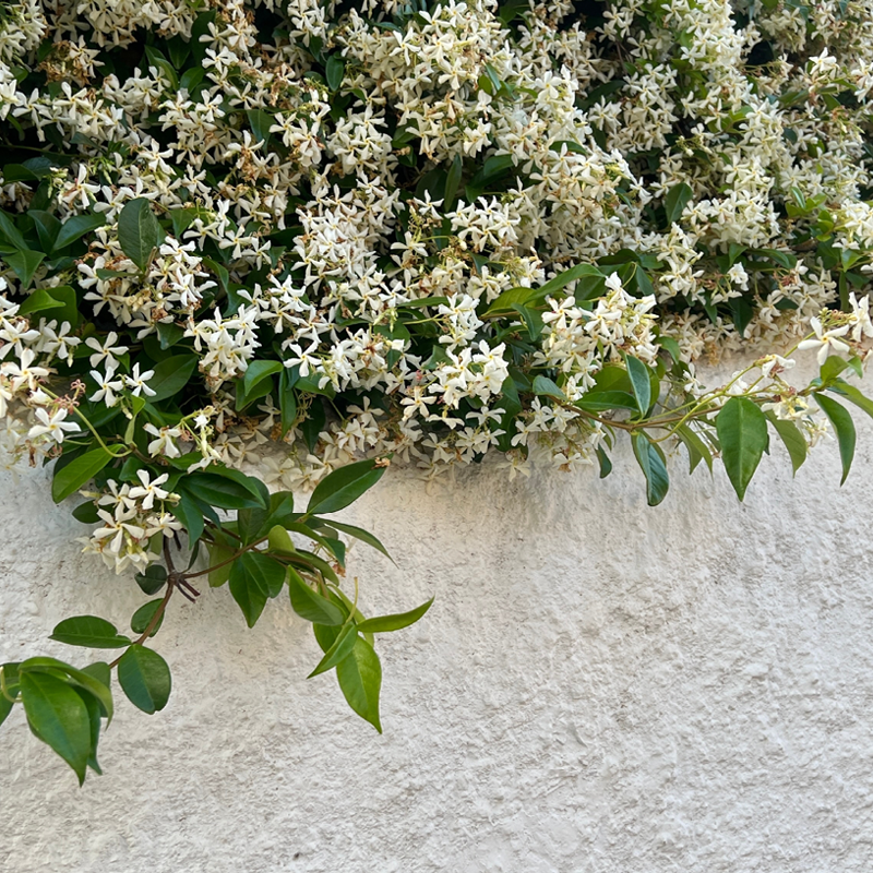 Le Trachelospermum est aussi connu sous le nom de jasmin toscan ou jasmin étoilé. C’est une plante grimpante très appréciée, qui se distingue par ses fleurs blanches en forme d’étoile, aussi élégantes que parfumées. Leur parfum intense de jasmin évoque instantanément les étés méditerranéens. Et grâce à son feuillage persistant, il habille murs, clôtures ou treillages toute l’année, même en hiver.