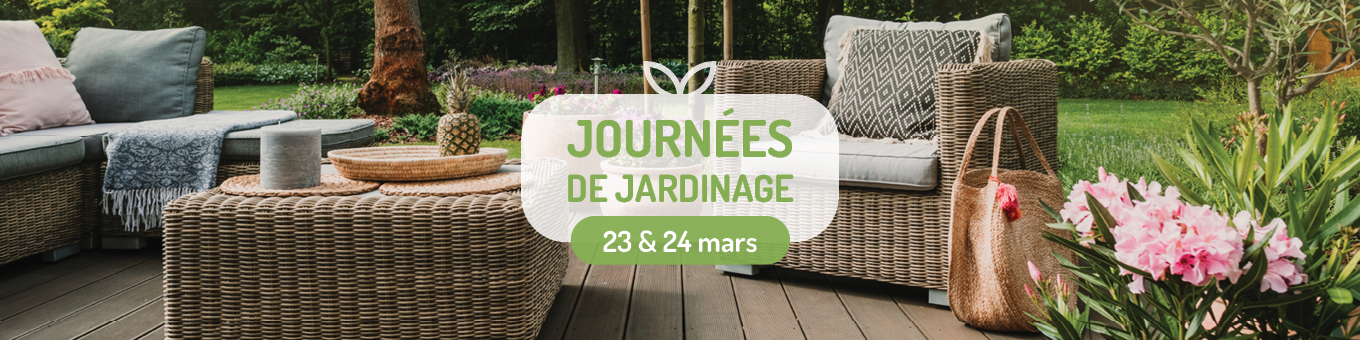 Venez découvrir nos journées du jardinage les 23 et 24 mars. Deux jours d'ateliers, de réductions, de jeux amusants et de concours dans tous nos magasins. Découvrez la nouvelle collection de meubles de jardin lors de cet événement à ne pas manquer.