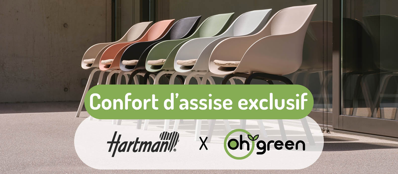 Chez Oh Green, nous sommes fiers de nous associer à Hartmann, leader du marché des meubles d'extérieur de haute qualité. Ensemble, nous apportons style et confort à votre espace extérieur.