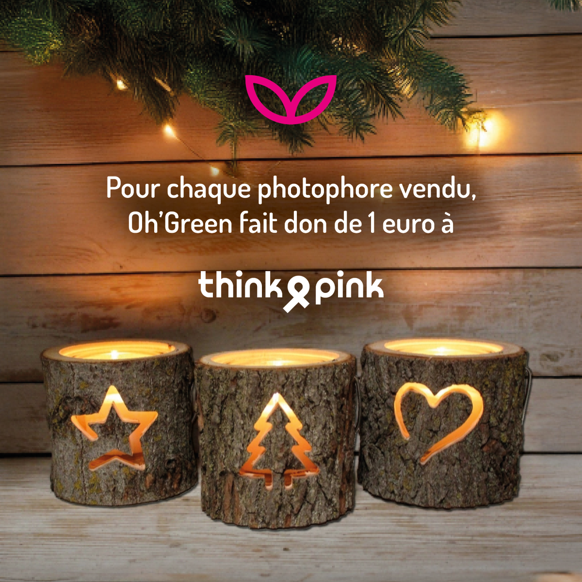 Pour chaque photophore vendu, Oh'Green fait don de 1 euro à Think Pink.