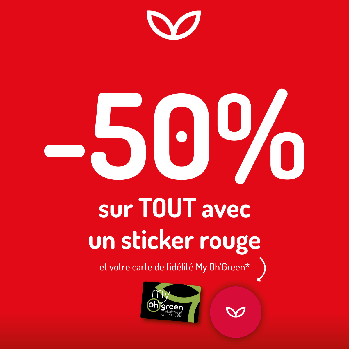 *Non cumulable avec d’autres promotions en cours et fleurs coupées. La remise sera calculée à la caisse et appliquée sur le prix de vente conseillé. La disponibilité et le stock par jardinerie peuvent changer. Valable uniquement pour les détenteurs de la carte de fidélité My Oh’Green dans toutes les jardineries Oh’Green jusqu'à épuisement du stock.