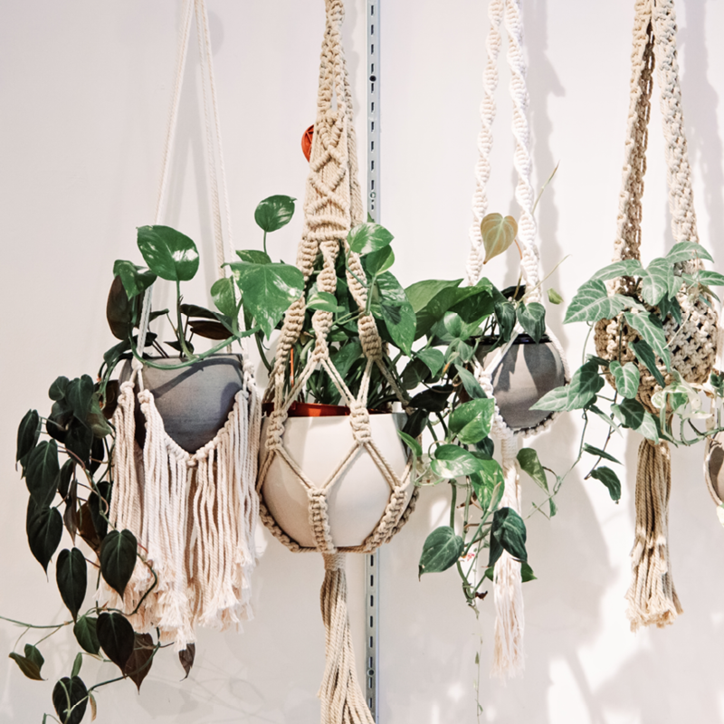 - Combineer verschillende hangplanten op verschillende hoogtes voor een luchtige, levendige groene hoek. Gebruik plantenstandaards, wandhaken of plafondhangers om het speels te maken.