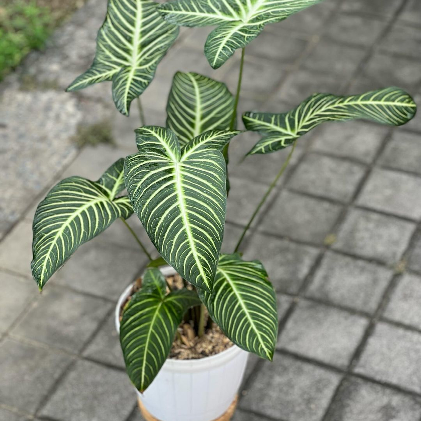 Wil jij je huis een exotische toets geven? Dan is de Caladium (Xanthosoma lindenii), ook wel bekend als ‘engelenvleugels’, precies wat je zoekt! Met zijn grote, pijlpuntvormige bladeren en opvallende witte nerven in het diepgroene blad, is de plant een echte blikvanger. De engelenvleugels hebben weinig onderhoud nodig en passen perfect in elk interieur.