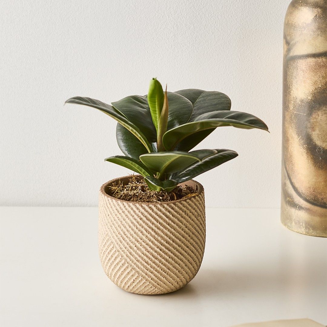Strak, stijlvol en altijd netjes in het blad – de Ficus elastica Sofia is de minimalistische zus binnen de Ficus-familie. Geen schreeuwerige kleuren, wel een subtiele glans en een frisgroene look die perfect past in een modern of Scandinavisch interieur.