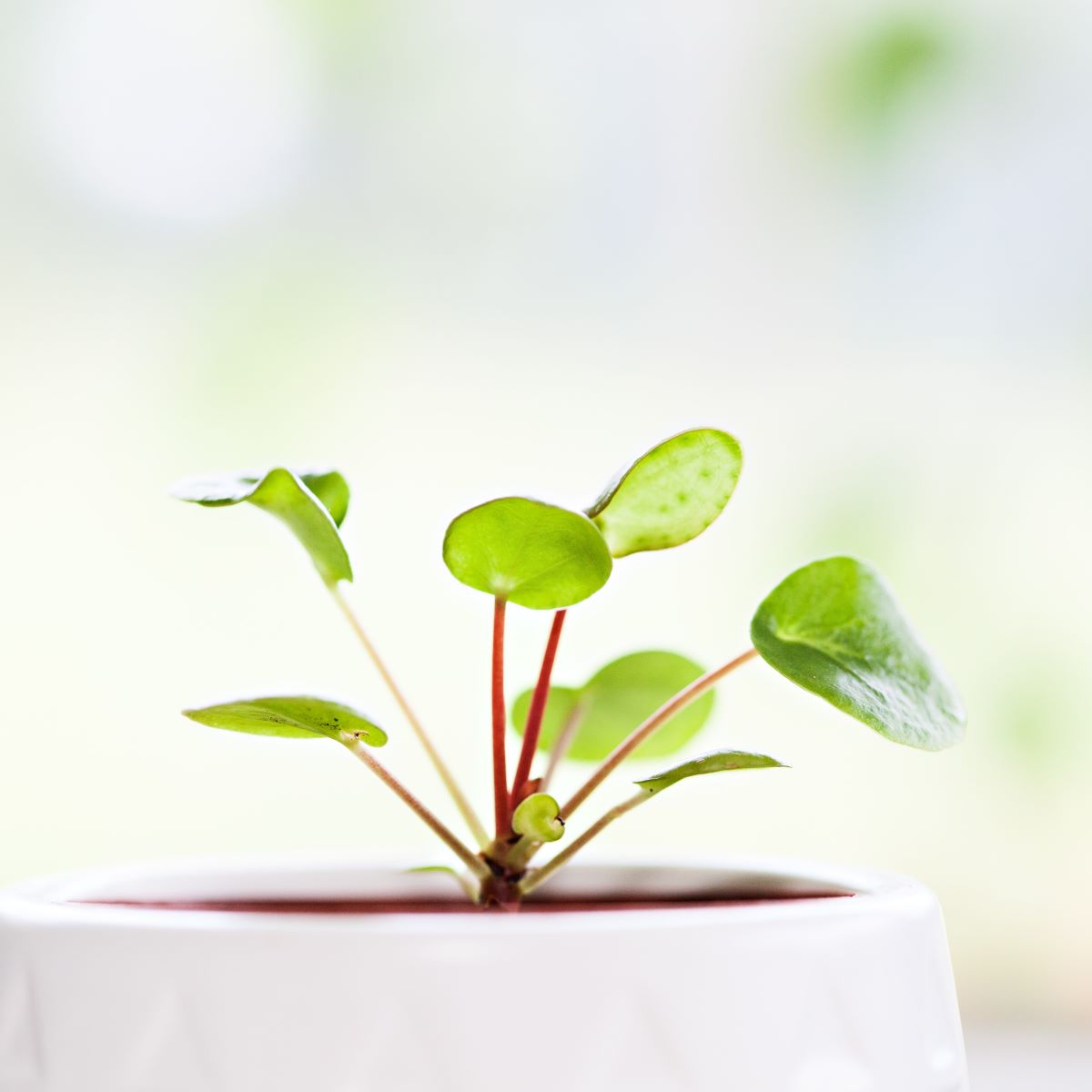 • Pilea ‘baby’: een trendy plantje met ronde blaadjes, ook wel pannenkoekplantje genoemd.