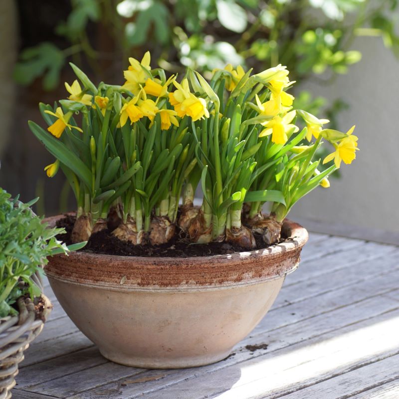 • Met narcissen maak je in je tuin een feest van kleur en stijl. Zo combineren de bloemen heel mooi met een houten plantenbak, zeker als je houdt van landelijk. Maar je plant de bollen even goed in een lege fruitschaal of in een overtollige rieten mand, die je bedekt met een laagje plasticfolie en vervolgens potgrond. Op die manier geef je niet-gebruikte huisraad een tweede en vooral fleurig extra leven!