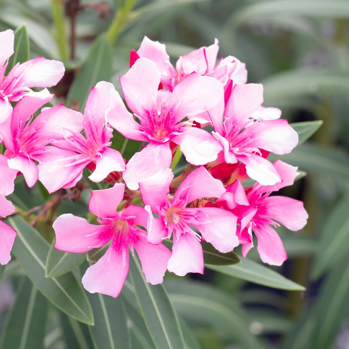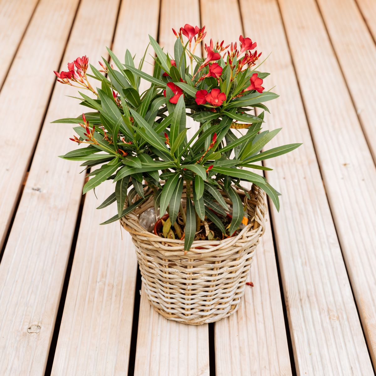De oleander (Nerium oleander) komt van nature voor in Zuid-Europa, Noord-Afrika en Azië. Daar groeit ze vaak langs droge rivierbeddingen of in zinderende zon. Geen wonder dat ze houdt van warmte en licht. In de Romeinse tijd sierde ze al paleistuinen en tempelpleinen — niet voor niets dus een klassieke schoonheid.