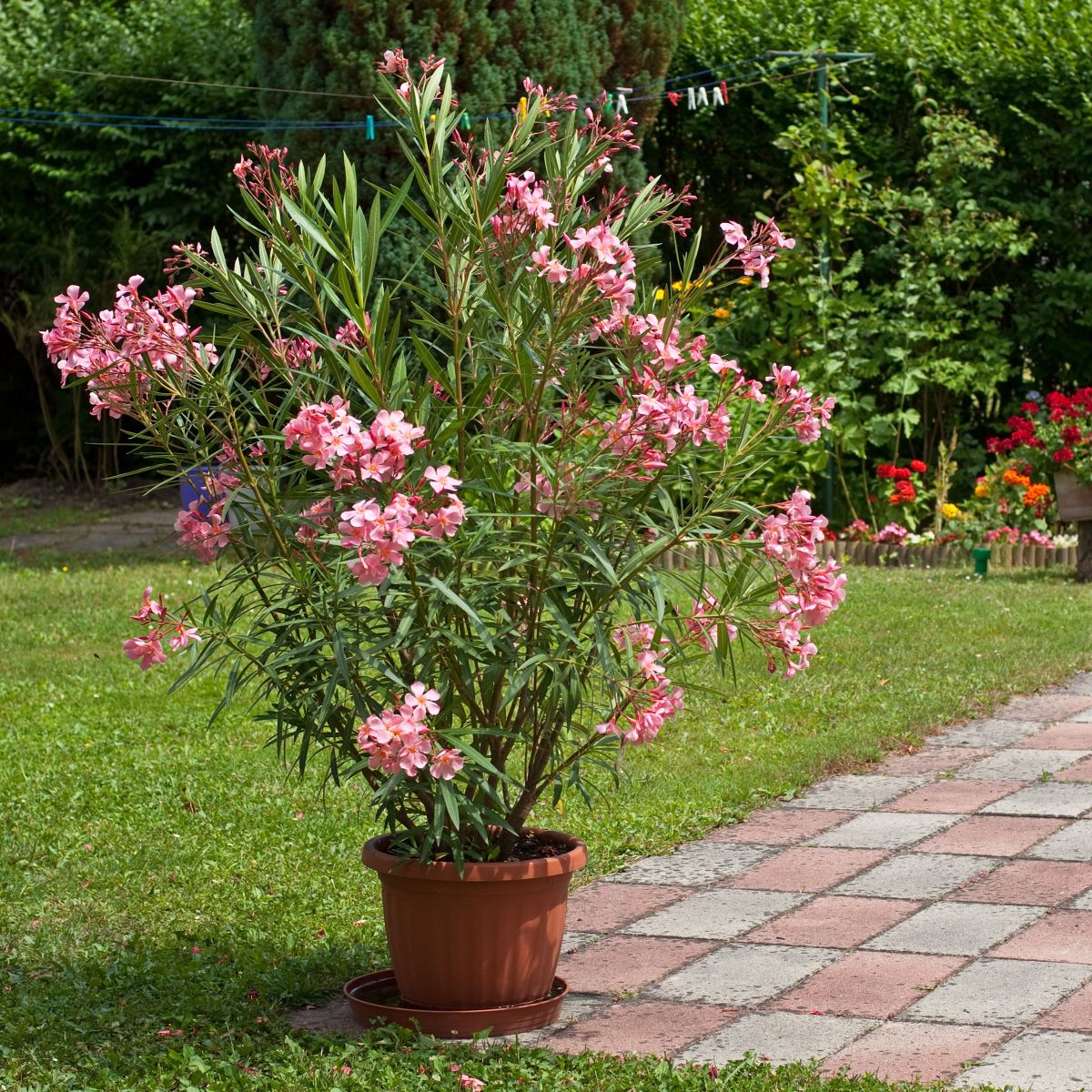 Gebruik een grote terracotta pot met goede drainage. Oleander houdt van ruimte, én van droge voeten.