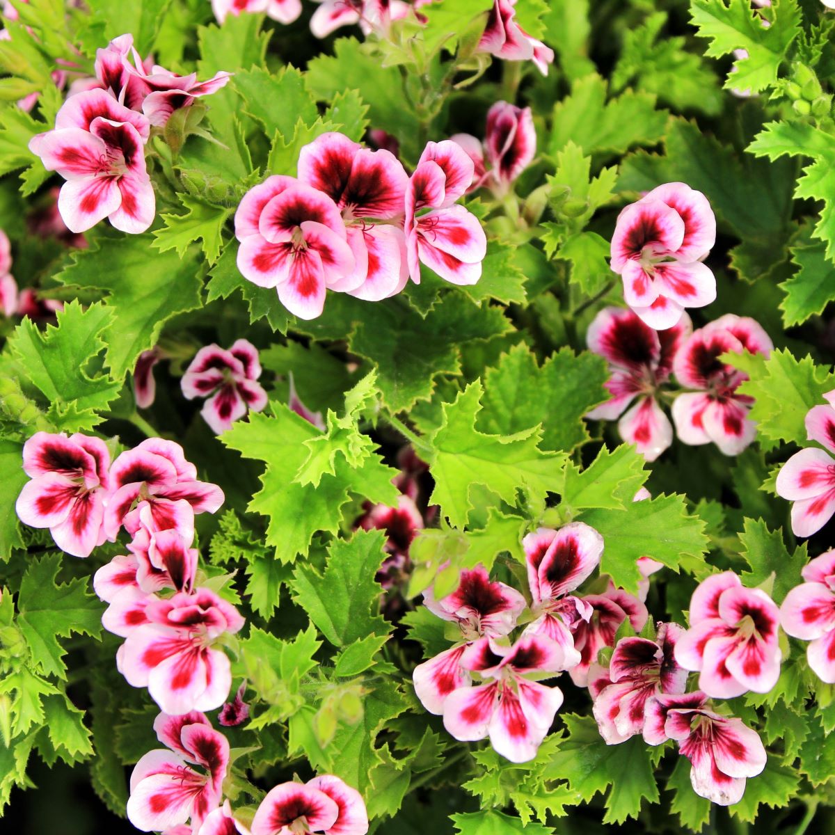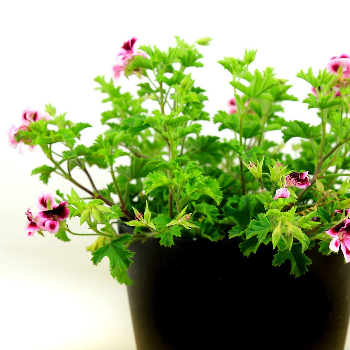 Deze geranium is niet zomaar mooi. De blaadjes geven een frisse citrusgeur af zodra je ze aanraakt. Die geur houdt muggen instinctief op afstand. Tegelijk bloeit hij uitbundig in tinten als paars, roze en lila, met soms een donker hart voor extra contrast.