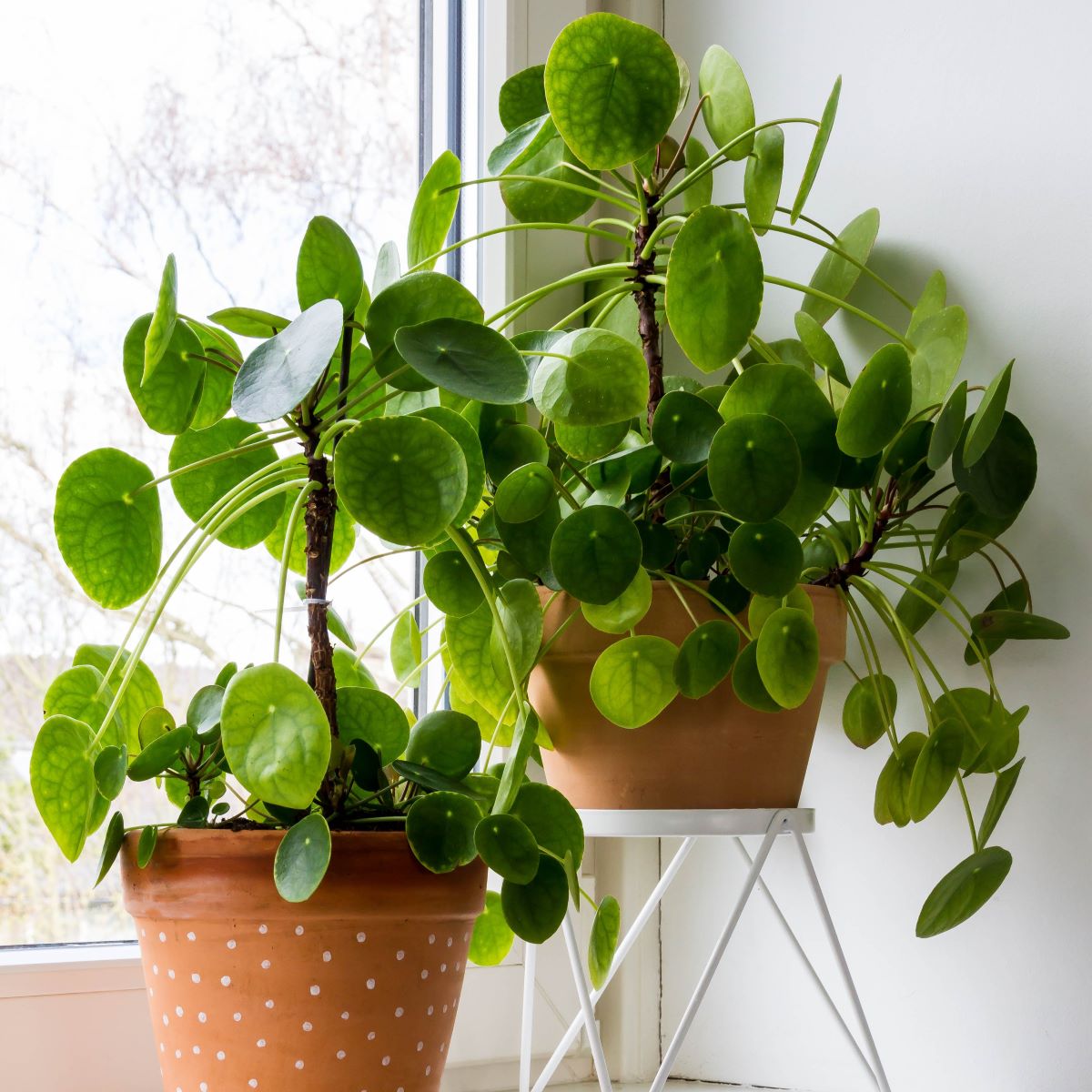 - Snelle groeier: je koopt de pannenkoekenplant meestal als een kleine plant, maar hij groeit verder in de hoogte én in de breedte. Hoe meer ruimte je de plant geeft, hoe groter die zal worden. Vormt er zich een stam en groeien de bladeren hoger? Ondersteun je plant dan met een plantenstok.