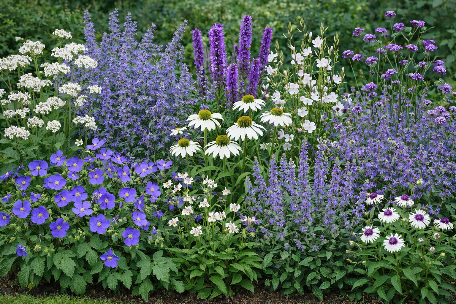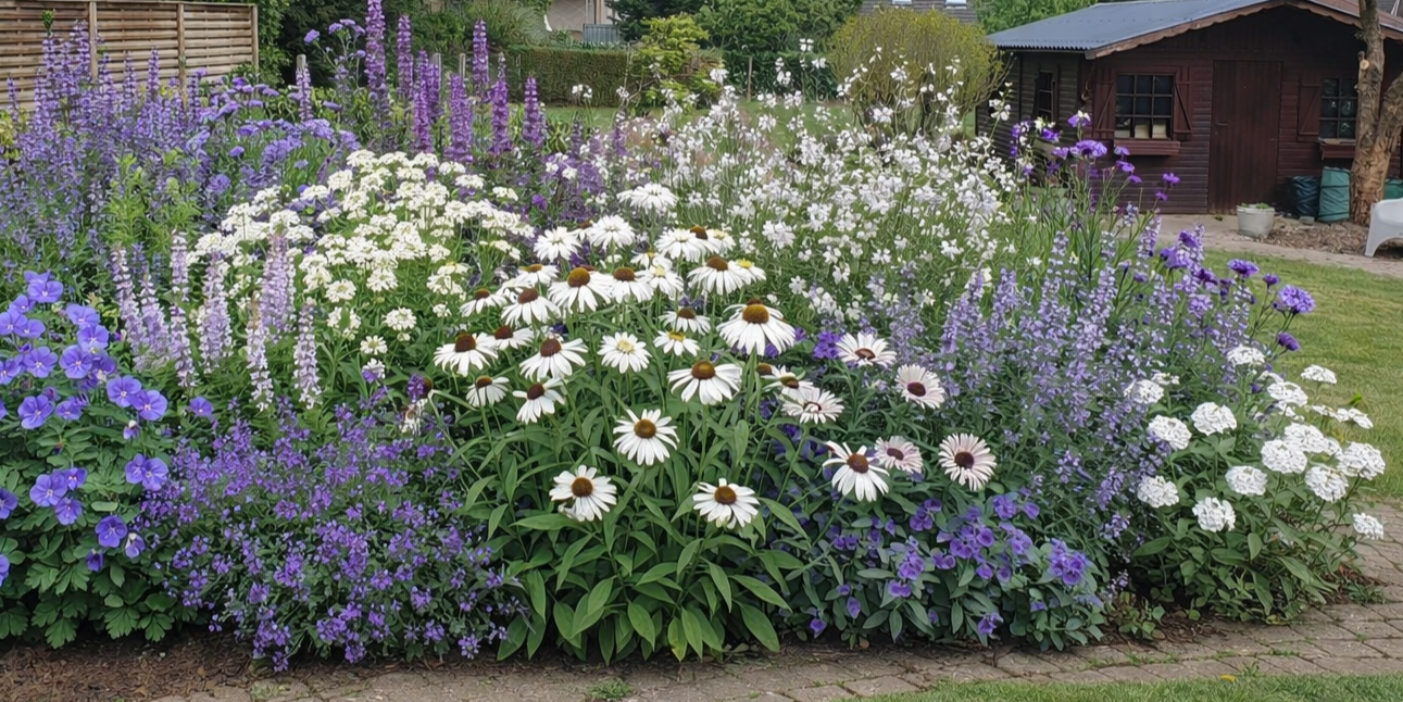 Deze wit-blauw-paarse plantenborder combineert rust, hoogte en speelsheid. Perfect voor wie houdt van een natuurlijke uitstraling met sterke planten die jaar na jaar terugkomen. Eén slimme keuze, jarenlang tuinplezier.