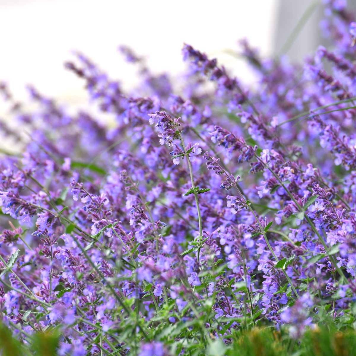 Nepeta ‘Walker’s Low’ en Centaurea ‘Amethyst in Snow’ openen het seizoen met blauw-paarse en wit-paarse accenten -