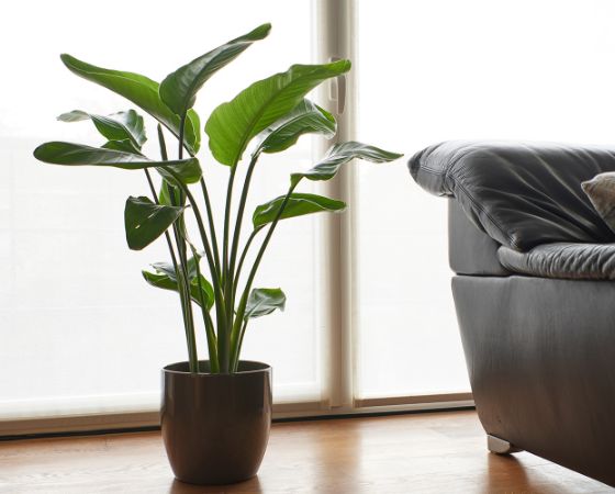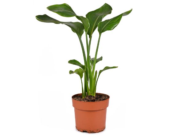 De Strelitzia is een schitterende exotische plant met grote groene bladeren die tot 55 cm lang kunnen worden. Als je hem goed verzorgt, verwent hij je met prachtige oranje bloemen. Je hoeft hem maar 1 keer per week water te geven. In ruil krijg je een stukje tropische jungle in huis.