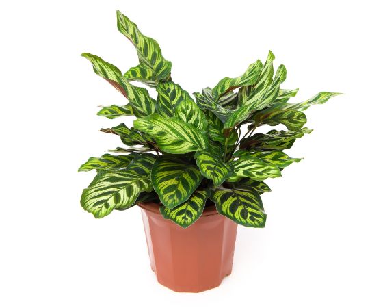 De Calathea is pure plantenpracht met opvallende golvende, geribbelde, ovale en ronde bladeren. Ze zijn versierd met patronen en tekeningen. Bij beweging ritselen ze zachtjes. Je hebt altijd leven in huis. Zodra de zon opkomt, gaan de bladeren open om licht op te vangen. ‘s Avonds gaan ze met zacht geritsel weer dicht. De verzorging? 2 keer per week water geven en af en toe besproeien.