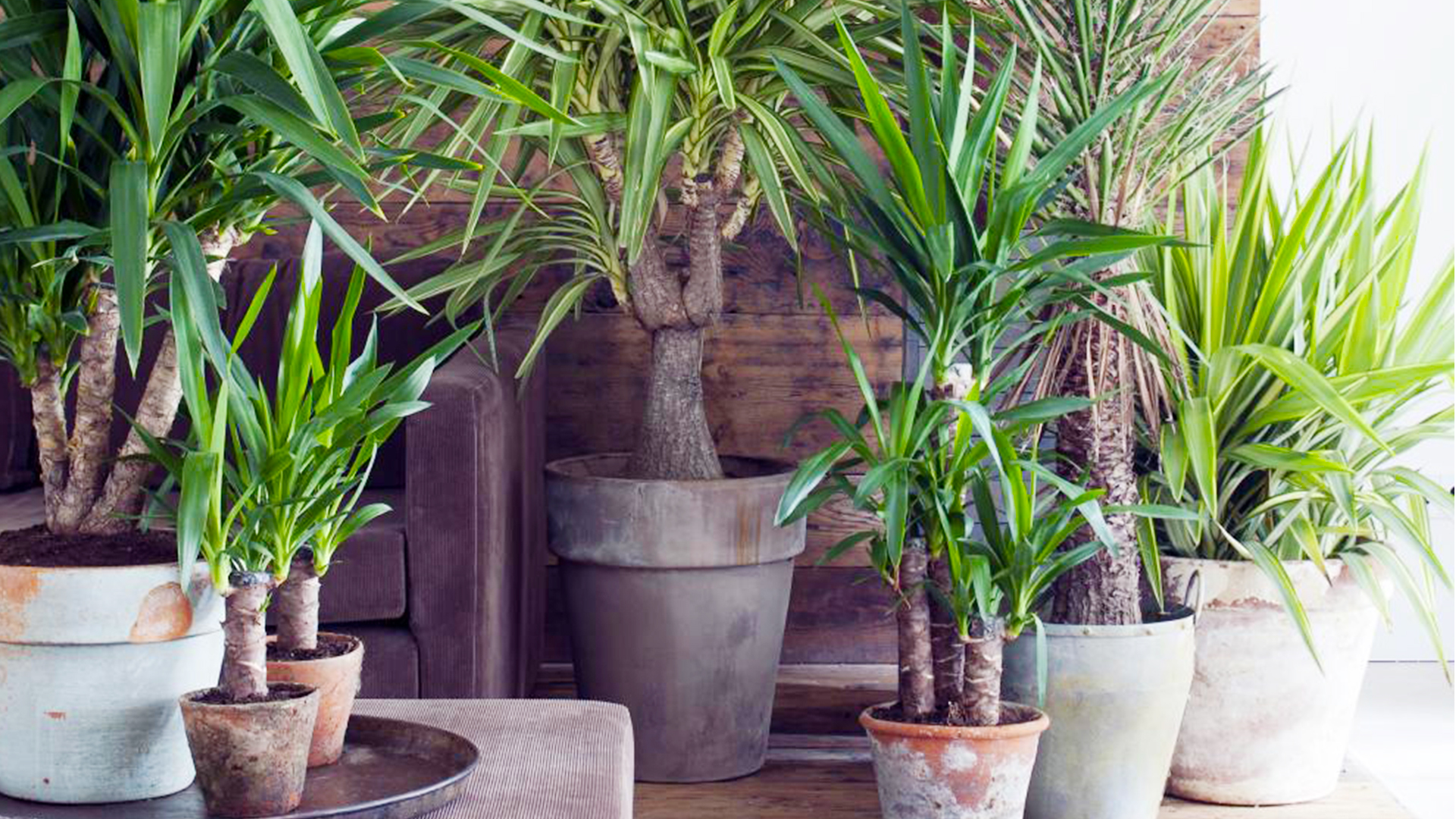 De stoere palmlelie of Yucca, met een ruwe stam en spitse bladeren, komt uit de droge regio’s van de Verenigde Staten. Geef hem regelmatig een klein beetje water. Dan is die grote kamerplant op haar best. Laat je potgrond tussen de gietbeurten lichtjes uitdrogen. Zo voorkom je rotte wortels. Worden de onderste bladeren bruin en lelijk? Haal ze dan weg. Zo geef je nieuwe bladeren meer energie om te groeien.
