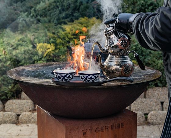 Wij zijn absoluut fan van deze BBQ van Belgische bodem: de Tiger Fire. Je maakt vuur met hout in de ronde schaal en bakt op de rand daarrond of op het rooster. Door de ronde vorm kan iedereen zijn eigen vlees, vis of groente bakken. De vuurschaal is gemaakt van staal met een hittebestendige coating. Klaar met grillen? Dan doet de Tiger Fire dienst als vuurkorf. Mooi om naar te kijken én spectaculair om op te koken.