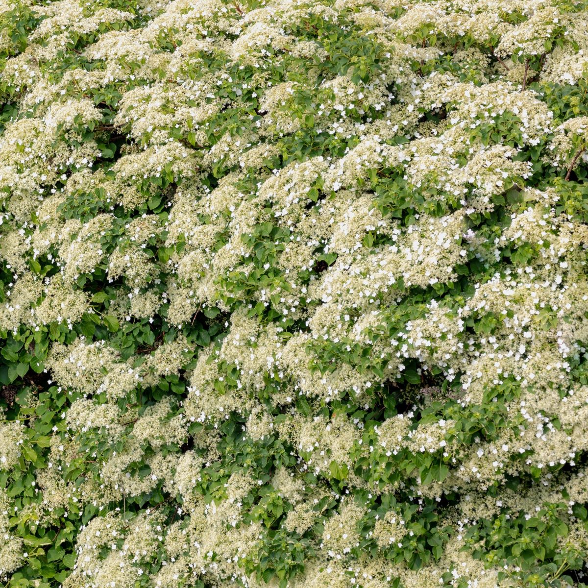 • Witte bloemen in juni-juli en decoratief blad, ook zonder steun prachtig.