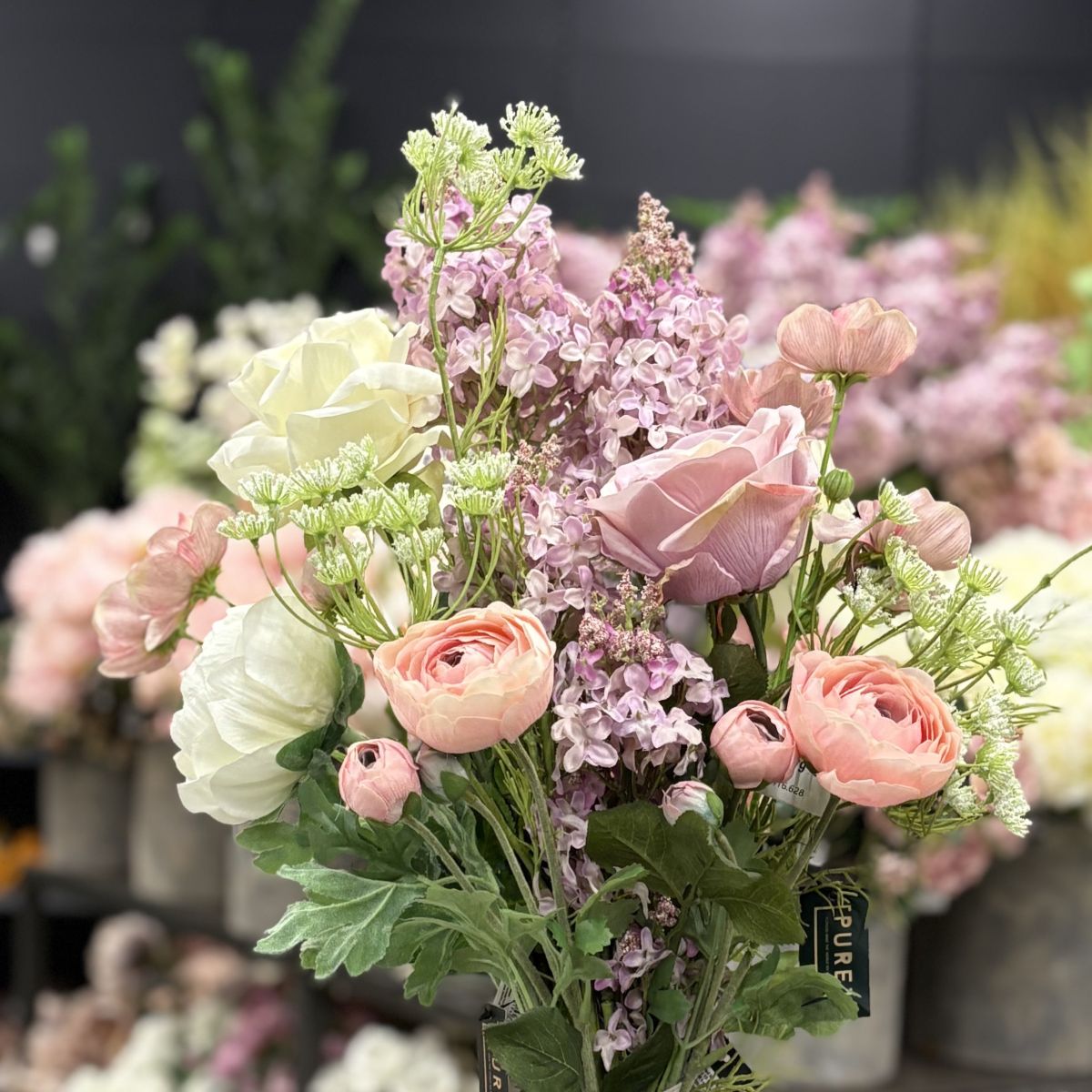 Een kunstboeket ontstaat niet in één keer. Door verschillende bloemen en takken te combineren groeit het boeket vanzelf in volume en uitstraling. Door te variëren in hoogte, kleur en structuur oogt het geheel natuurlijk en speels, zonder strak of stijf te worden.