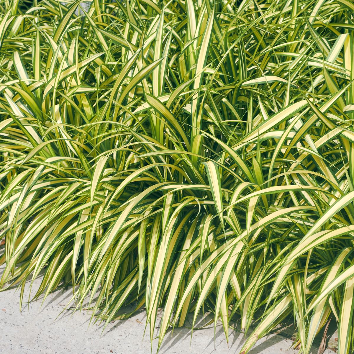 Een veelzijdig wintergroen siergras met een groot scala aan bladkleuren, van frisgroen tot brons en bont.