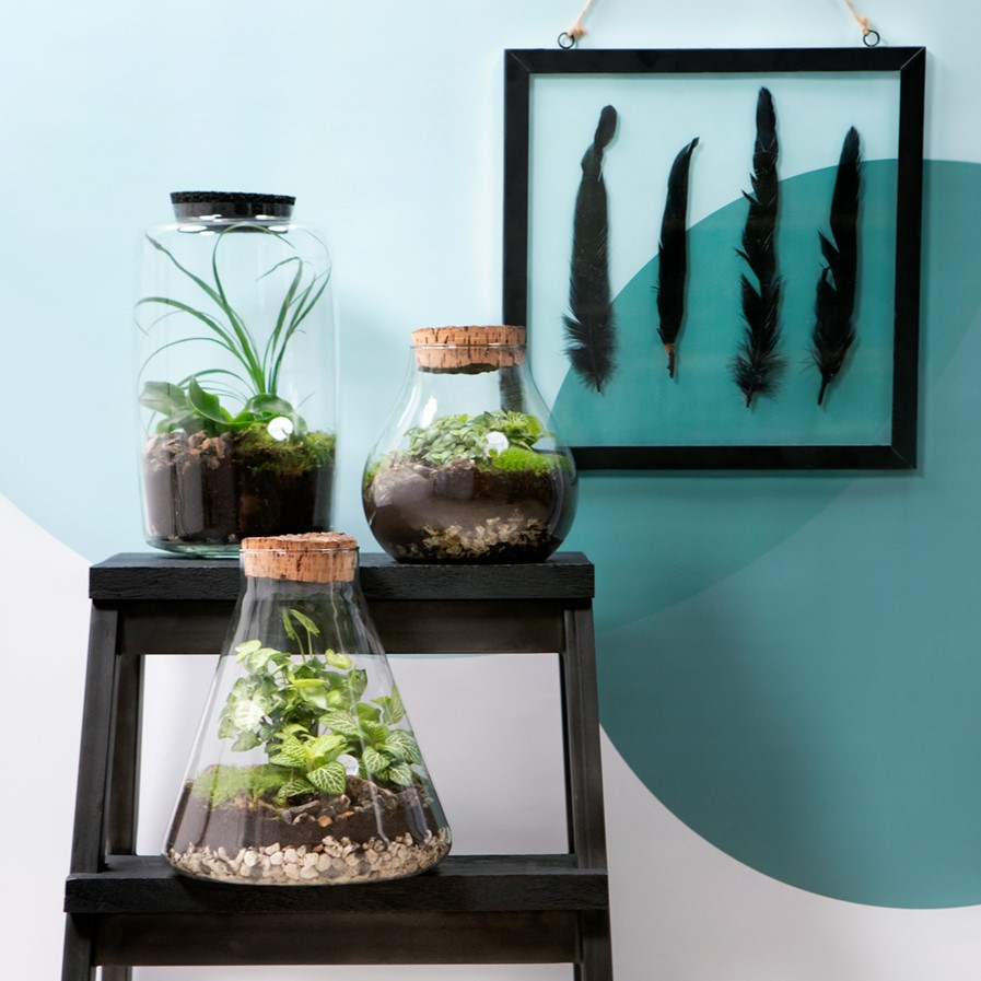 Of je nu kiest voor een open of een gesloten glazen potje, zorg er altijd voor dat je plantjes van vocht houden. Denk aan een schattige (gras-)lelie, een uniek luchtplantje of een elegante orchidee. Trouwens: plantjes die weinig licht nodig hebben, zoals varens, mos, en vetplantjes, voelen zich in een afgesloten potje helemaal thuis.