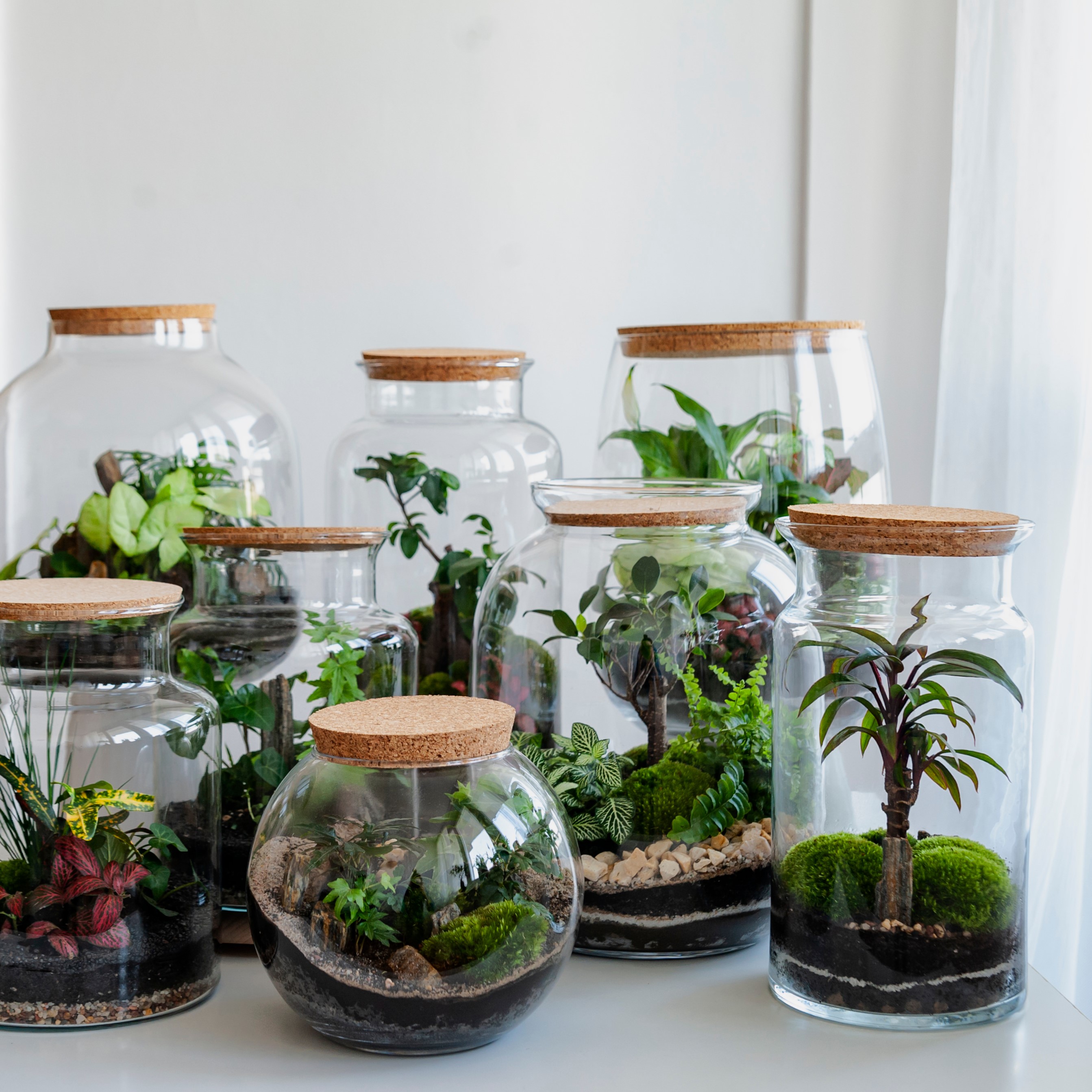 Om een terrarium te vullen, kies je uit een resem plantjes. De enige vereiste is natuurlijk dat je een klein exemplaar kiest, maar voor de rest mag je je inspiratie de vrije loop laten gaan!