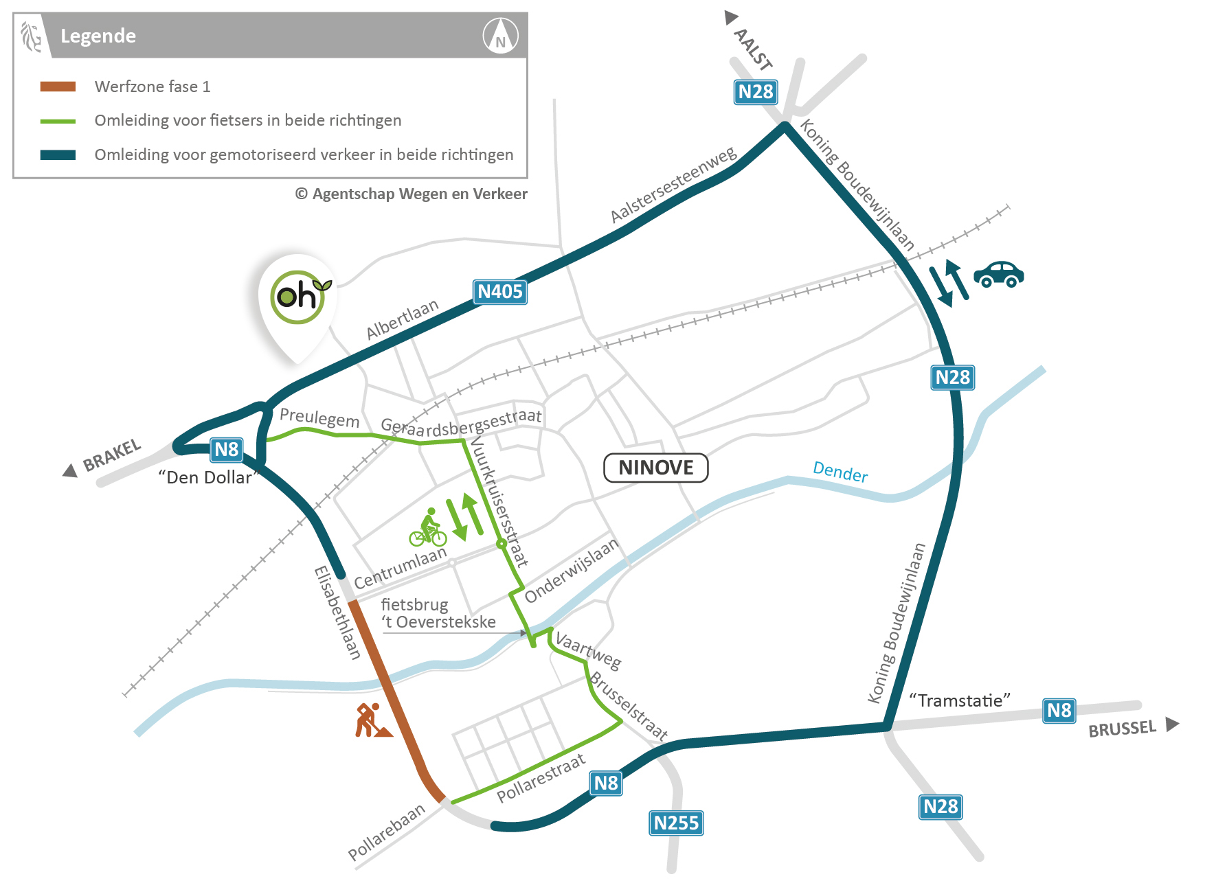 Oh'Green Ninove blijft tijdens de wegenwerken aan de Elisabethlaan vlot bereikbaar