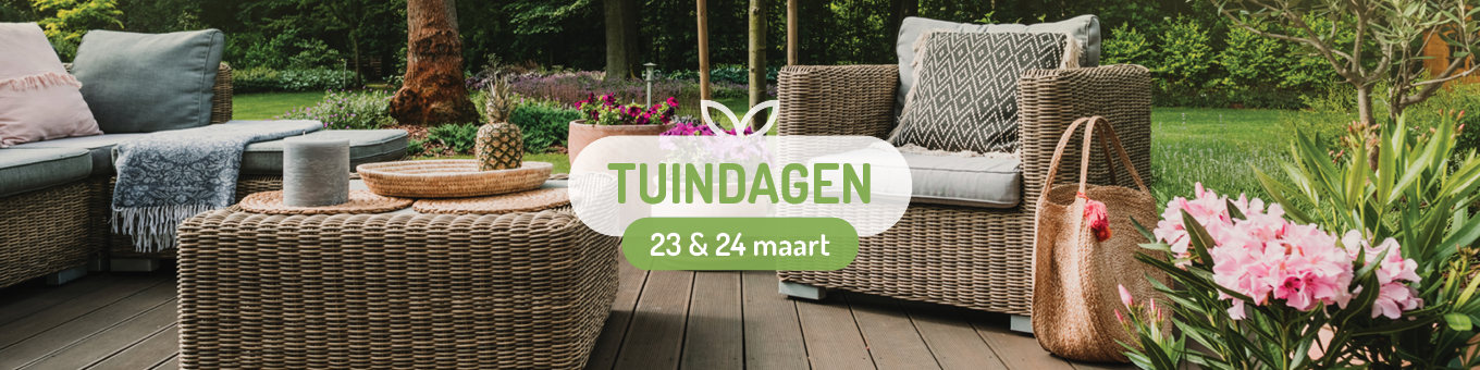Kom op 23 en 24 maart onze leuke tuindagen ontdekken. Twee dagen volop workshops, extra kortingen, leuke spelletjes en wedstrijden, in al onze filialen. Ontdek de nieuwe tuinmeubelencollectie tijdens dit niet-te-missen-evenement.